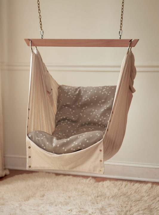 Adjustable Baby Swing, Natural, Organic, Toddler, Baby Hammock, Hammock Chair, Sensory Swing, Organic Cotton Starry Grey Sheet Included